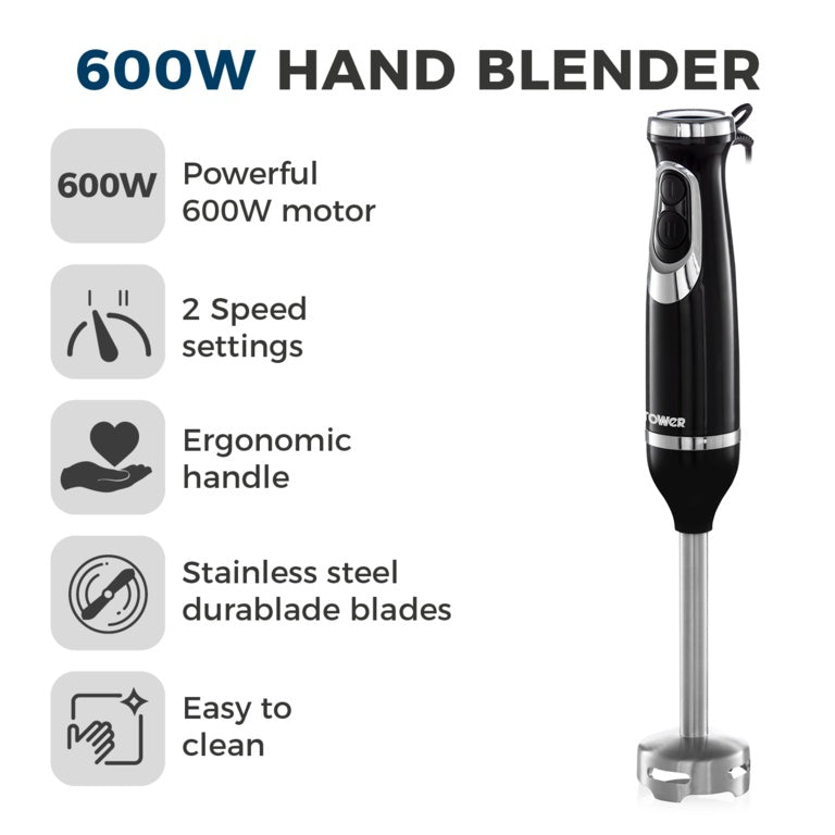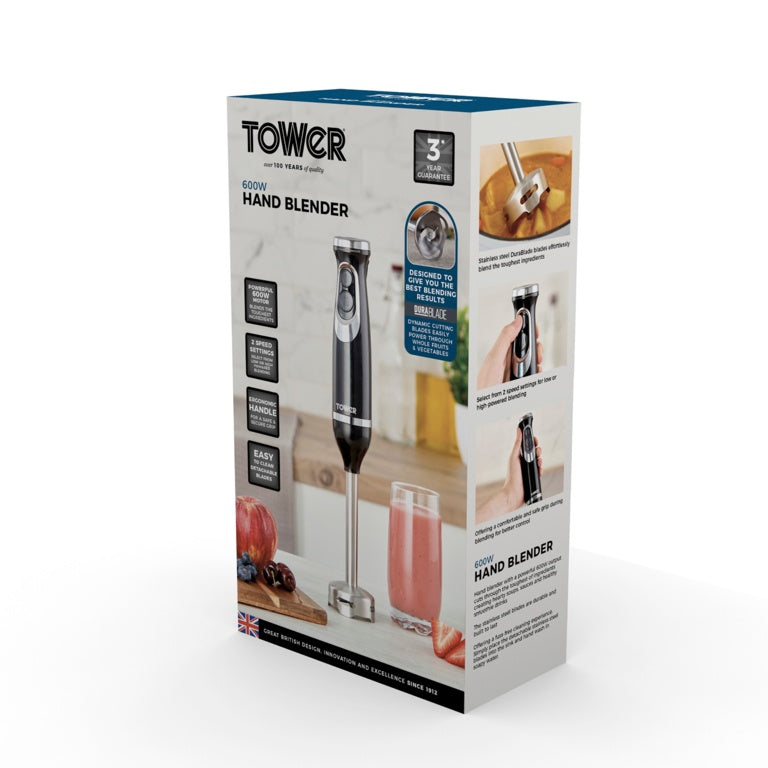 Powerful 600W motor to create soups sauces and more with ease|Durable stainless steel blades for optimum performance|2 speed settings with button for simple operation|Sturdy construction makes this blender durable and practical to use|Ergonomic grip and modern design with stainless steel accents|Easy to clean detachable parts|Item Dimensions: H379mm x W52mm x D52mm|Product Packaging: Full Colour Box